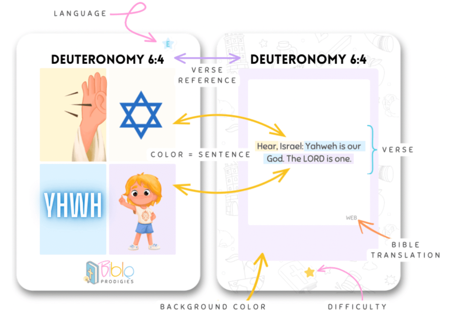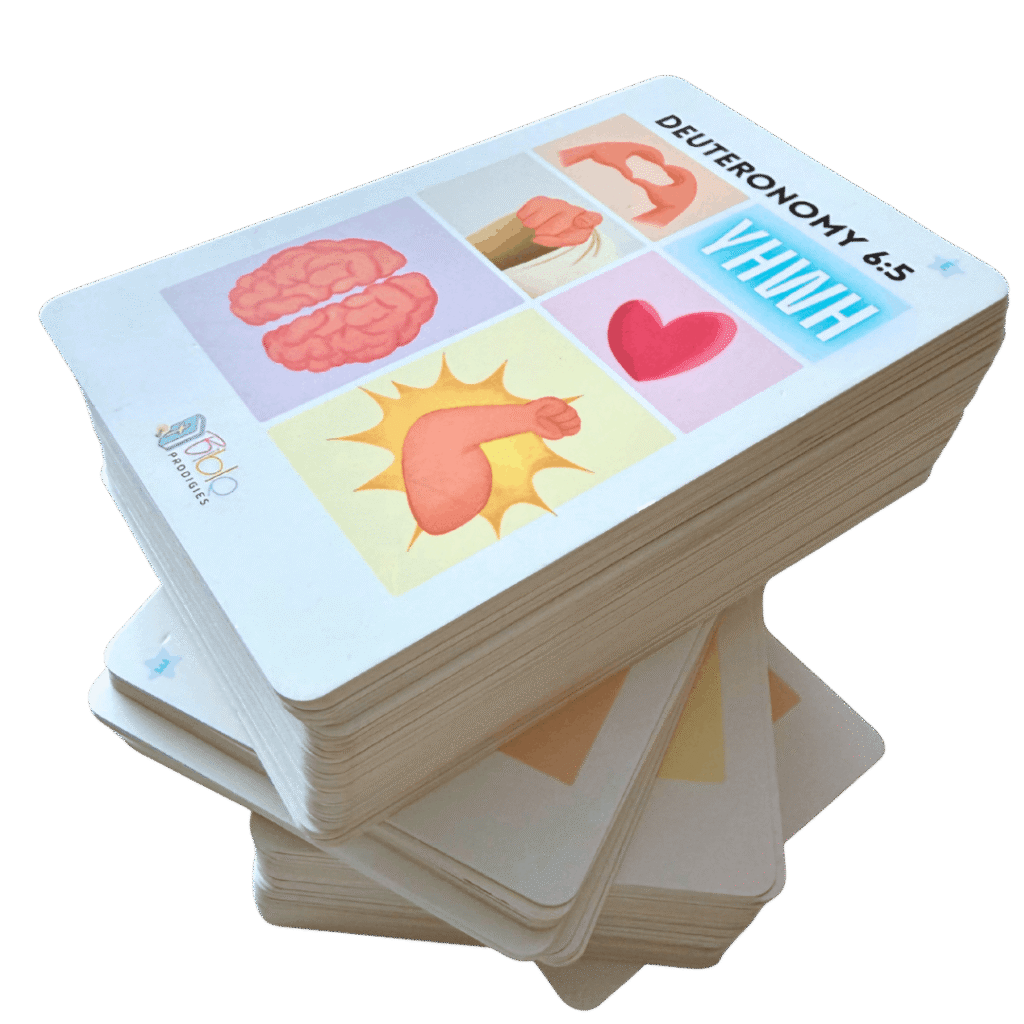 Bible Prodigies Memory Cards use specially designed visual cues with color-coded verses to represent the words of Scripture in images.